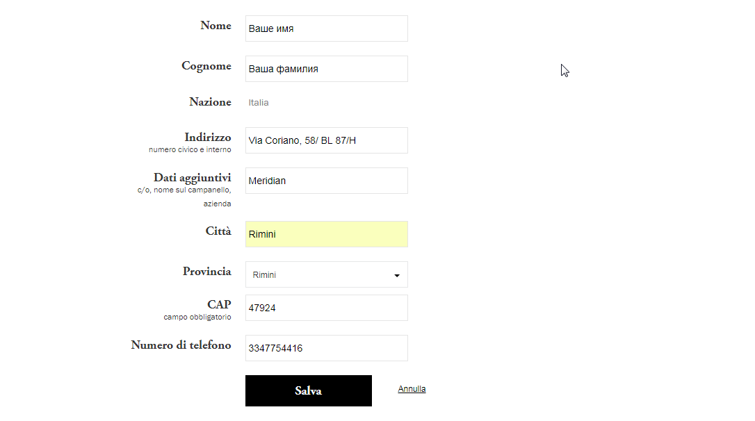 2.1.1. Предоставление адреса в Италии для получения Входящих Посылок.