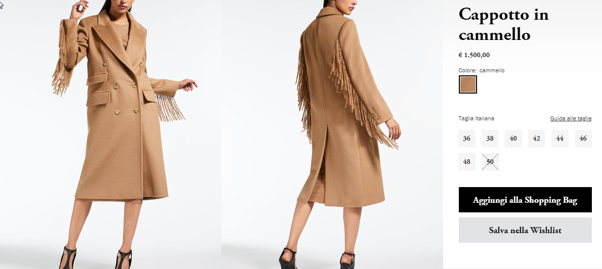 Вы переходите по ссылке на итальянский сайт Max Mara. Для вашего удобства внизу страницы можно выбрать и переключить сайт на русский язык. При этом страну доставки обязательно оставить Италия.